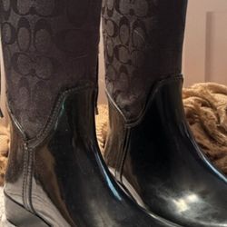 Womens Coach Tall Rainboots Black with Monogram Rubber Fabric Lace $73Cold Spring, MN