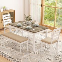 Farmhouse Dining Table Set with Upholstered Chairs & Bench, 59" Rectangular Kitchen Table Set with Old Design, White Dinner Room Table Set Wood Stable$350Cambridge, MN
