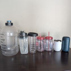 Liquid vessel lot, gallon jug, protein shaker, stainless mugs...