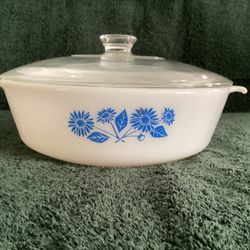 Anchor Hocking Fire King Blue Corn Flower 2 Qt Casserole Baking Dish With Clear Glass Cover #438$15Minneapolis, MN