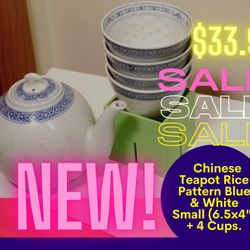 Chinese Teapot Rice Pattern(6.5x4”) + 4 CUPS Blue White Dragon .$33Saint Paul, MN