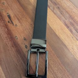 Express bonded leather reversible belt, 36, black and dark brown, gunmetal bucket, NEW