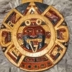 Wood Carved Tonatiuh Aztec Sun God Plaque, Disc, Aztec calendar face$40Newport, MN