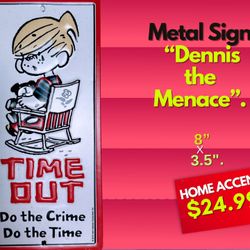 Small Metal Sign “ Dennis The Menace” 8”x 3.5”.$15Saint Paul, MN