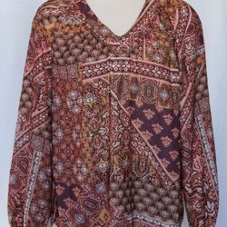 Democracy Women’s Small Boho Paisley V-Neck Blouse Burgundy Pink Long Sleeve$15Minneapolis, MN