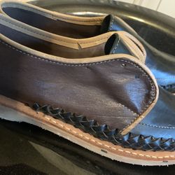 authentic handmade leather moccasins, calf-high very thick leather and super tough stitching, size 10$99Saint Paul, MN