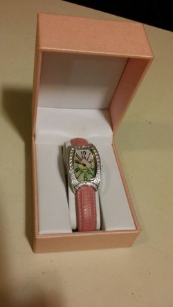 Pink leather, diamond trimmed, mother of pearl face watch.$25Saint Paul, MN