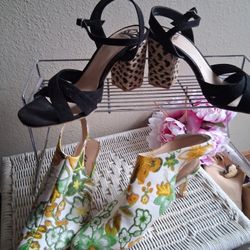 Lot Of 3 Just Fab Strappy Dress Sandals Block Heel Black Blue Poppy Size 8.5$20De Soto, MO