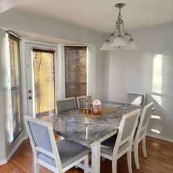 Steve Silver Furniture Canova Weathered White Wood and Marble Top Dining Table With 6 Chairs $1,200O'fallon, MO