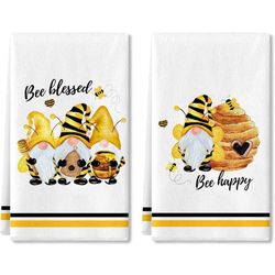 Bee Gnome Kitchen Towels, 2 Pack Cute Gnomes Bee Happy Be Blessed Absorbent Drying Tea Dish Towel for Cooking Baking, 18 x 28 Inch (Bee Towel) $6Hillsboro, MO