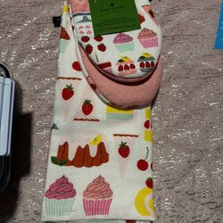 New Kate Spade 4 Piece Oven Mitt(2) /Hand Towels(2) Cupcake Cake Strawberry Cherry $20Hillsboro, MO