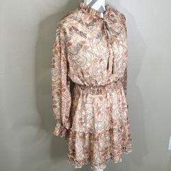 FATE Women’s Juniors Small Orange Peach Tan Paisley Print Boho Smocked Ruffle Long Sleeve Lined Fall BOHO Bohemian Mini Dress$15St. Louis, MO