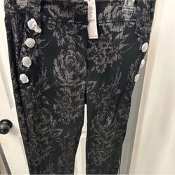 New With Tag Black And Silver Floral Print Straight Leg Pants From White House Black Market$80Weldon Spring, MO
