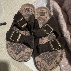 New Womens Size 7 Brown Muk Luk Buckle Juliette Footbed Sandals $10Hillsboro, MO