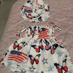 Baby's Independence Day Style Butterfly Pattern Sleeveless Shirred Dress & Hat, Infant & Toddler Girl's Clothing For Summer/Spring, As Gift$6Hillsboro, MO