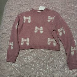 Girls Medium 10/12 Cropped Pink White Bow Sweater $5Hillsboro, MO