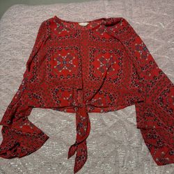 Womens Small Altar’d State Tie Front Cropped Red Bandana Print Bell Sleeve $5Hillsboro, MO