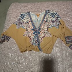 Womens Yellow Multicolored Xs Flying Tomato Gold/Teal Aztec Print Faux Wrap Boho Blouse Size XSmall$5Hillsboro, MO