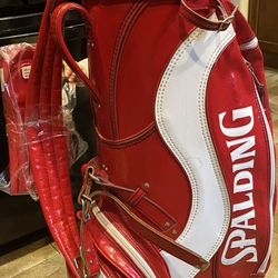 Vtg Spalding Golf Club Red White Leather Pro Shop Display Staff Bag Driver Covers$350St. Louis, MO