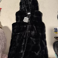New Womens Size Small Laundry Black Faux Fur Hooded Vest $25Hillsboro, MO
