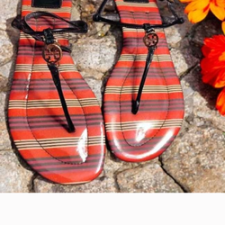 Tory Burch Emmy Striped T Strap Logo Flat Sandals Size 8$25Overland, MO