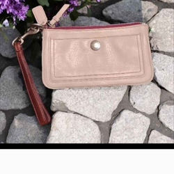 Y2K Coach Cream, leather coach wristlet with burgundy accents$25Overland, MO