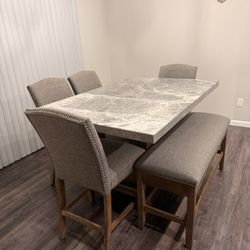 Marble top dining room table, 4 chairs, 1 bench- with protection plan$800Scott Air Force Base, IL