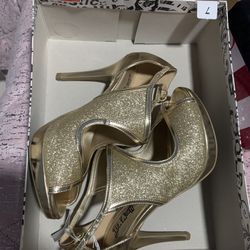 Brash Womens Size 7 Gold Sparkly Lyric High Heel Dressy Open Toed Shoes $15Hillsboro, MO