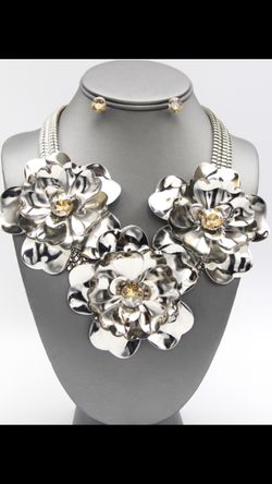 🗣🗣Bank in stock! 🗣🗣 Silver and gold Flowered rhinestone necklace and earring set! Get yours today!$25St. Peters, MO
