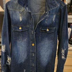 WT #1093 Jean Jacket Shredded Distressed Blue Women size Large Button Down$40St. Louis, MO