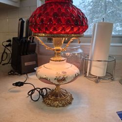 SUPER NEAT LOOKING VINTAGE TABLE LAMP WITH A FLORAL DESIGN ON a MILK GLASS CENTER $40Arnold, MO