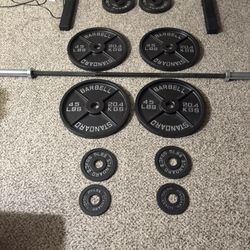 Full Weight Bench Set With Weight Plates, Bench, Clips, Bar And Spotter Arms$435Des Peres, MO
