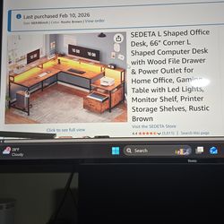 L shaped office desk brown and black with 4 ele plugs and 2 charging dock new still in box # 783$125Kansas City, MO
