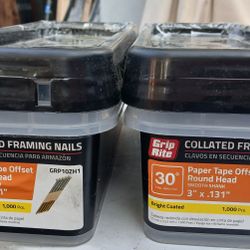 $20 each pack Grip-Rite 3 in. L X 11 Ga. Angled Strip Bright Framing Nails 30 deg 1000 pk, $20 ea pk.$20Sugar Creek, MO