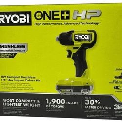BONUS BATTERY & BITS! NEW RYOBI 18V ONE+ HP Brushless 1/4" Impact Driver Kit WITH Battery & Charger$89Lee's Summit, MO