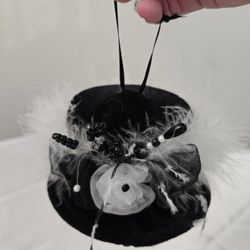 Vintage Black Velvet White Feather 5" 20s Flapper Cloche Hat Hanging Ornament $8Peculiar, MO