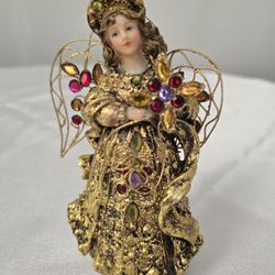 Vtg Gold and Jeweled Ceramic Angel Christmas Tree Ornament 6" NOS Stand Or Hang $8Peculiar, MO
