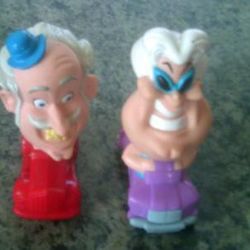 Vintage Lot of 2 Vintage B. Little Traction Car w/ Large Bobble head Characters Multi-color#