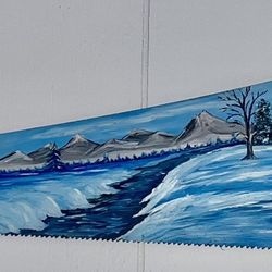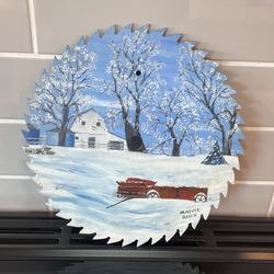 Hand-Painted Folk Art Circular Saw Blade – Winter Farm Scene by Maxine Allen (Signed Original) $75Lee's Summit, MO