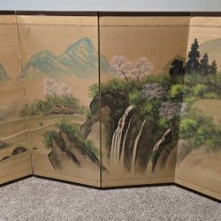 READ Vtg Japanese 66x36 4-Panel Folding BYOBU Silk Screen Divider Art$150Peculiar, MO