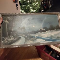 Vintage Original Framed Painting With Cabin And Night Sky$50Exclsor Sprgs, MO