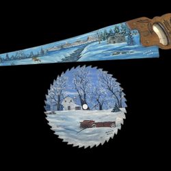 Hand-Painted Vintage Hand Saw – Winter Scene Folk Art Wall Décor$125Kansas City, MO