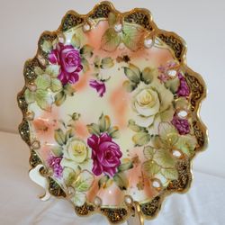 Vintage Noritake Nippon Hand Painted Moriage with Gold, White and Purple Roses Cabinet Plate$70Lee's Summit, MO