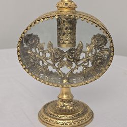 Ormolu Gold Filigree Perfume Bottle Oval Beveled Glass & Roses Motif NO TOPPER$40Peculiar, MO