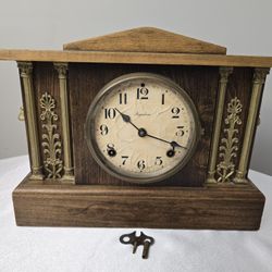 Vintage Antique E Ingraham Wooden Mantle Clock With Key S-1823 Lion NEEDS REPAIR$69Peculiar, MO