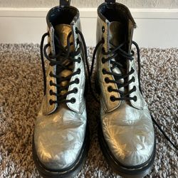 Retro silver and black holographic Air Wair Dr Martens size 6M vintage metallic$100Riverside, MO