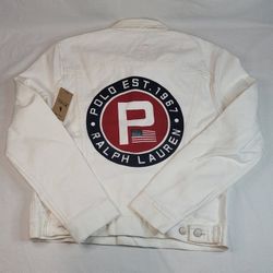 Polo Ralph Lauren Garment Dyed Logo Flag White Denim 1967 P Trucker Jacket Men M$175Kansas City, MO
