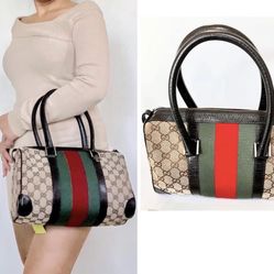 Authentic GUCCI Sherry Line GG Canvas Leather Mini Boston Bag Beige Brown $750Claycomo, MO