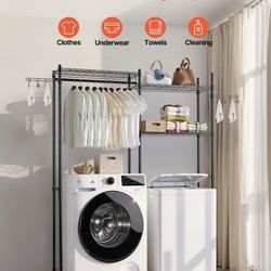 Storage Racks Above Washer and Dryer, 5-Level Laundry Room Air-Drying Stand with Hanging Rod and Hooks, Dual Row Adjustable Space Optimizer, Suitable $70Independence, MO