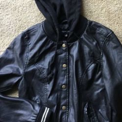 NEW LOOK GIRLS SIZE S BLACK FAUX LEATHER JACKET COAT WITH BUTTONS & HOOD NICE!$20Lee's Summit, MO